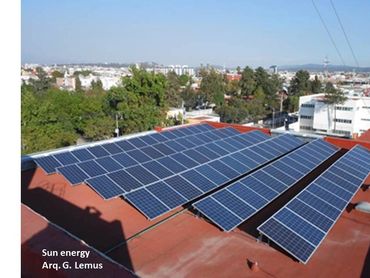 Sistema solar interconectado a la red de a base de un arreglo solar monocristalino de 3.51 Kwp. Generación diaria promedio de 13 Kwh, (390 Kwh mensuales) salida bifásica 220 VCA.